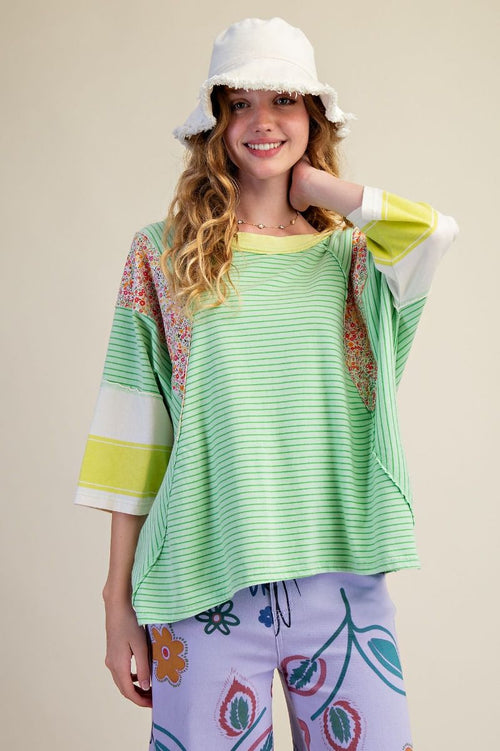 STRIPE CONTRAST DROP SHOULDER TEE